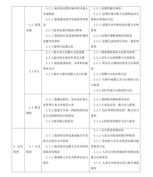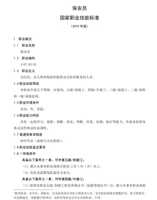 保安員國家職業(yè)技能標(biāo)準(zhǔn)目錄