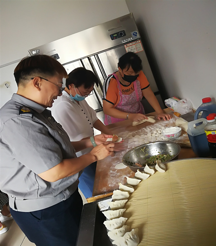 廚房師傅早早的將包餃子需要的一切原材料采購到位,親手剁制了餃子餡、活好了面團(tuán)。包餃子時(shí)大家分工明確、配合緊密,和面、切塊、搟面片、包餃子等各個(gè)程序進(jìn)行的井然有序。同志們個(gè)個(gè)大展身手,包出來的餃子也是各式各樣,花邊餃、元寶餃、月牙餃一應(yīng)俱全。當(dāng)熱氣騰騰的餃子在大家的期待下被端上餐桌時(shí),大家心中充滿了無限的成就感。