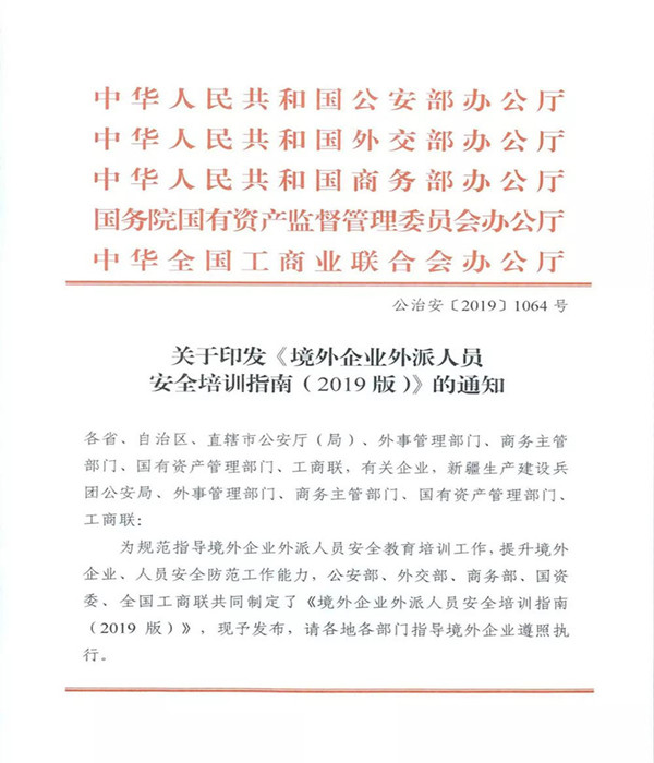 《境外企業(yè)外派人員安全培訓(xùn)指南(2019版)》