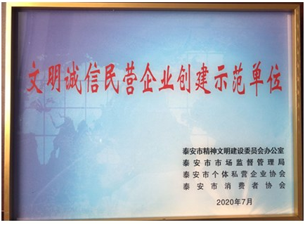 泰山聯(lián)合保安公司榮獲“文明誠信民營企業(yè)創(chuàng)建示范單位”榮譽稱號
