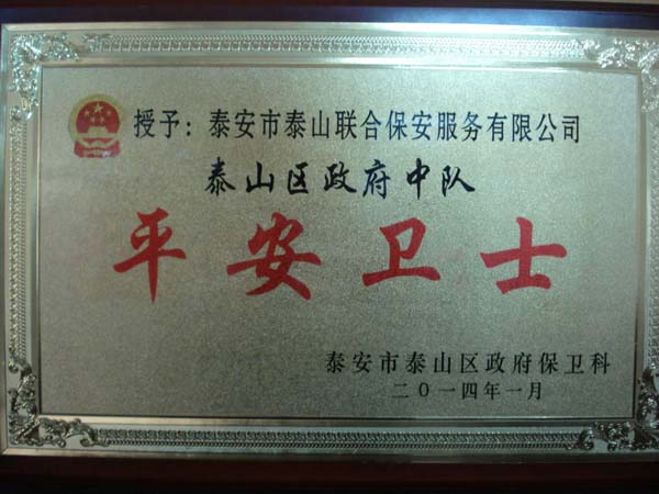 被泰安市泰山區(qū)政府授予“平安衛(wèi)士”稱號(hào)