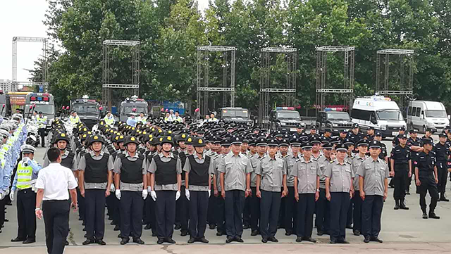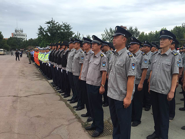 泰安市公安機(jī)關(guān)迎接十九大忠誠保平安誓師大會(huì)于2017年8月29日上午8:00在泰安市林校操場(chǎng)舉行。為了確保此次誓師大會(huì)活動(dòng)安全有序的進(jìn)行,根據(jù)上級(jí)安保工作總體部署,公司詳細(xì)制定了《勤務(wù)安全保衛(wèi)工作方案》,并召開專題會(huì)議,協(xié)調(diào)組織各項(xiàng)具體工作。任務(wù)下達(dá)后,公司積極與客戶協(xié)調(diào)抽調(diào)人員,召開會(huì)議進(jìn)行動(dòng)員,并對(duì)參加安保任務(wù)的隊(duì)員進(jìn)行專項(xiàng)培訓(xùn),使隊(duì)員充分認(rèn)識(shí)到做好此次安保工作的重要性、必要性。保安隊(duì)員們的良好表現(xiàn)進(jìn)一步樹立了泰山聯(lián)合保安的新形象,充分發(fā)揮了公安輔助力量的職能作用。